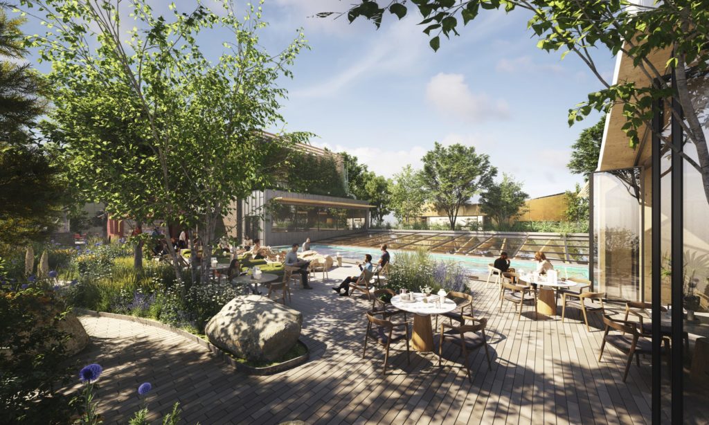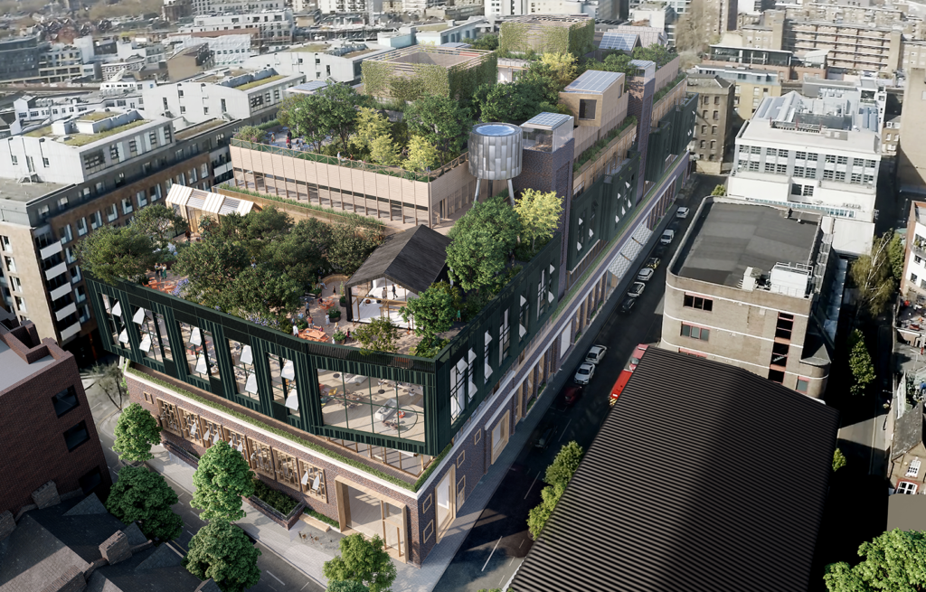 The project will have a 1.1 acre rooftop forest including over 100 established trees and 10,000 plants, making it London’s first office building to deliver an urban forest rooftop. This space will have extensive access for the local community and the general public, with community gardens and collaborative neighbourhood uses, a rooftop restaurant, bar and swimming pool, and private terraces for the office space below. Set to be one of the largest urban roof gardens in Europe, the building will make a significant contribution to London’s ambitious targets for greening, biodiversity and sustainability.
