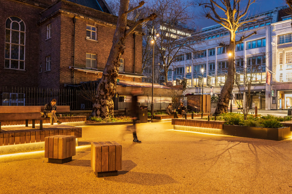 As well as the improved Whitfield Gardens, the West End Project will see new pocket parks along Tottenham Court Road, the transformation of Princes Circus in Holborn, and the creation of a totally new park at Alfred Place. Lighting design for all these new public realm projects is being provided by Michael Grubb Studio.