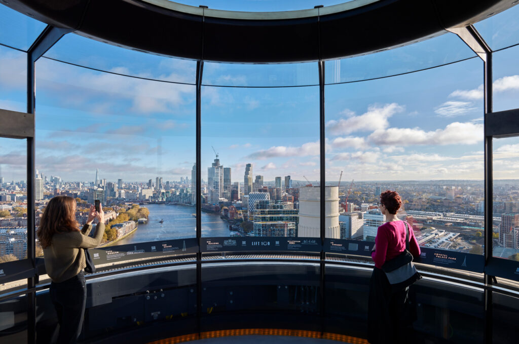 Lift 109 at Battersea Power Station is a one-of-a-kind experience, combining a dynamic audio visual experience with breath-taking 360-degree views of the London skyline from 109 metres above the ground. The 15-square-metre glass elevator travels inside the interior of the power station’s northwest chimney and presenting unobscured views of London night and day.
