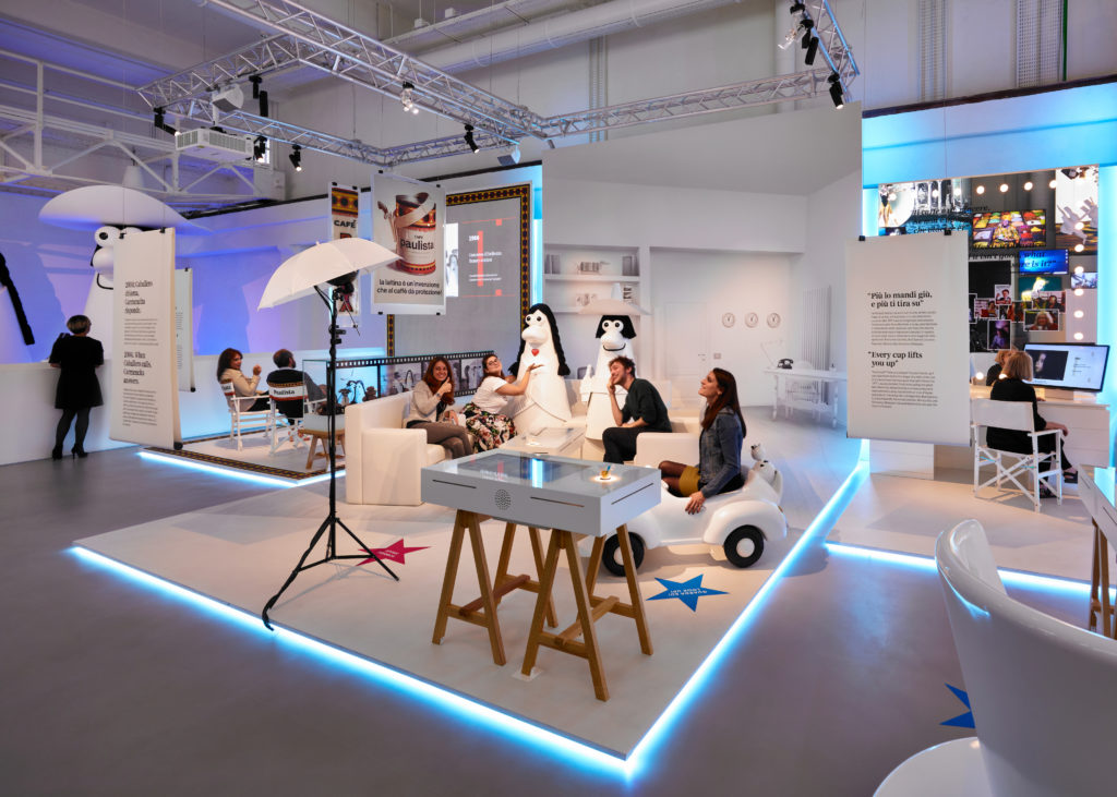 L’Atelier – is reminiscent of a photographic studio – bright, white and richly decorated with beautiful, bold and provocative images documenting 60 years of Lavazza’s creative collaborations with renowned artists and designers, and over 20 years of Lavazza’s infamous calendars. The gallery also showcases the most popular Lavazza advertising campaigns throughout the company’s history: ‘Caballero e Carmencita’, ‘Paradiso’ and other campaigns. Original props are displayed within set works that recreate the film sets and back stages of the advertising campaigns, while visitors are invited to take a picture of themselves with the famous characters and props.