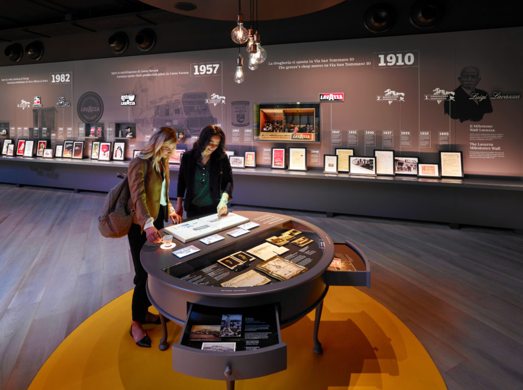Casa Lavazza – this cosy and evocative gallery lays out the main milestones in over 120 years of company history, starting with the first promissory note signed by Luigi Lavazza. An elegant and richly illustrated timeline spans the length of the gallery, while in the light-filled centre visitors can relax and explore a metaphorical recreation of the first ‘drogheria’ (meaning grocery store) used by Luigi Lavazza at the beginning of the brand’s history.
