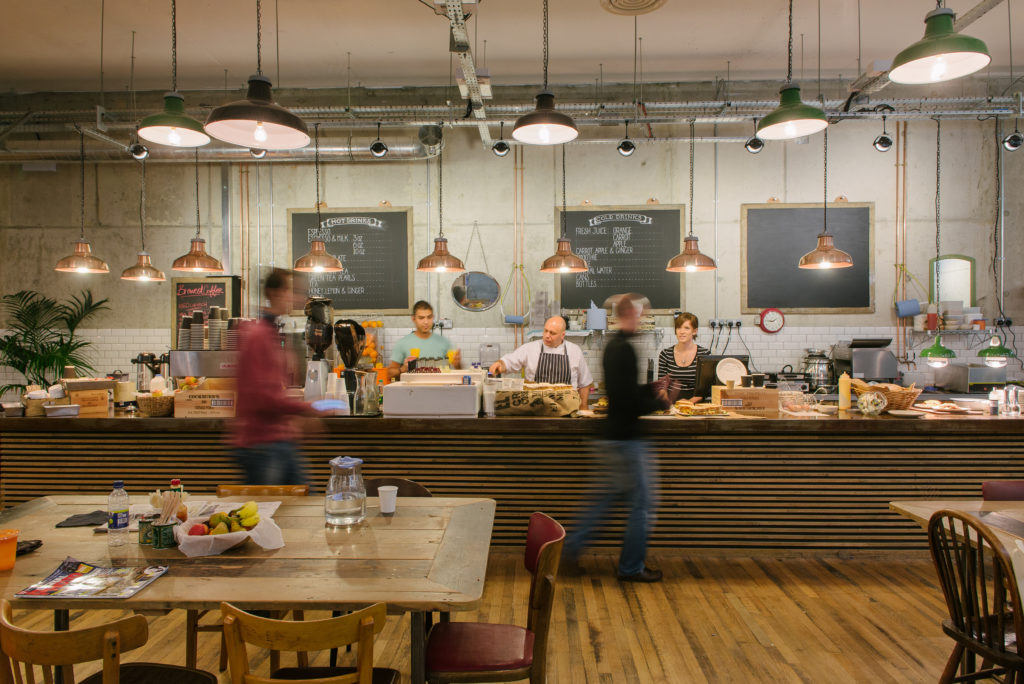 An intimate lighting scheme was introduced to the café-restaurant areas to promote staff engagement. Additional lighting was added to the performance space and the graphic information boards.