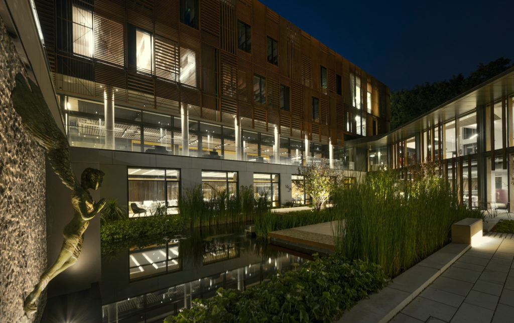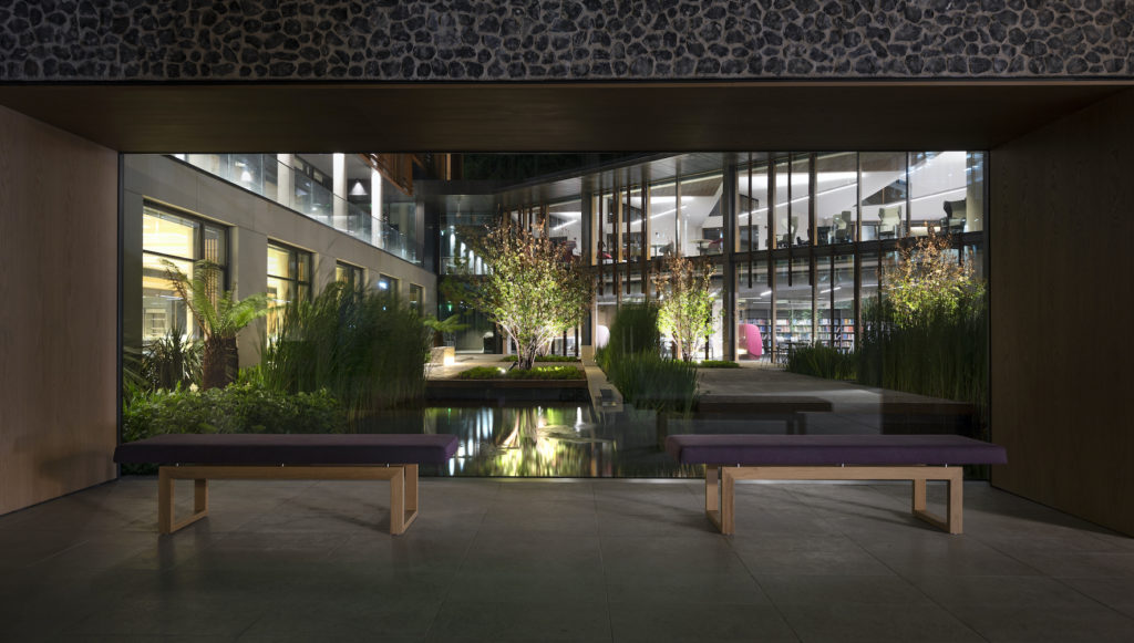 Michael Grubb Studio’s lighting brief was to create a welcoming environment that supports wellbeing, celebrates the architectural characteristics of the building and promotes use.